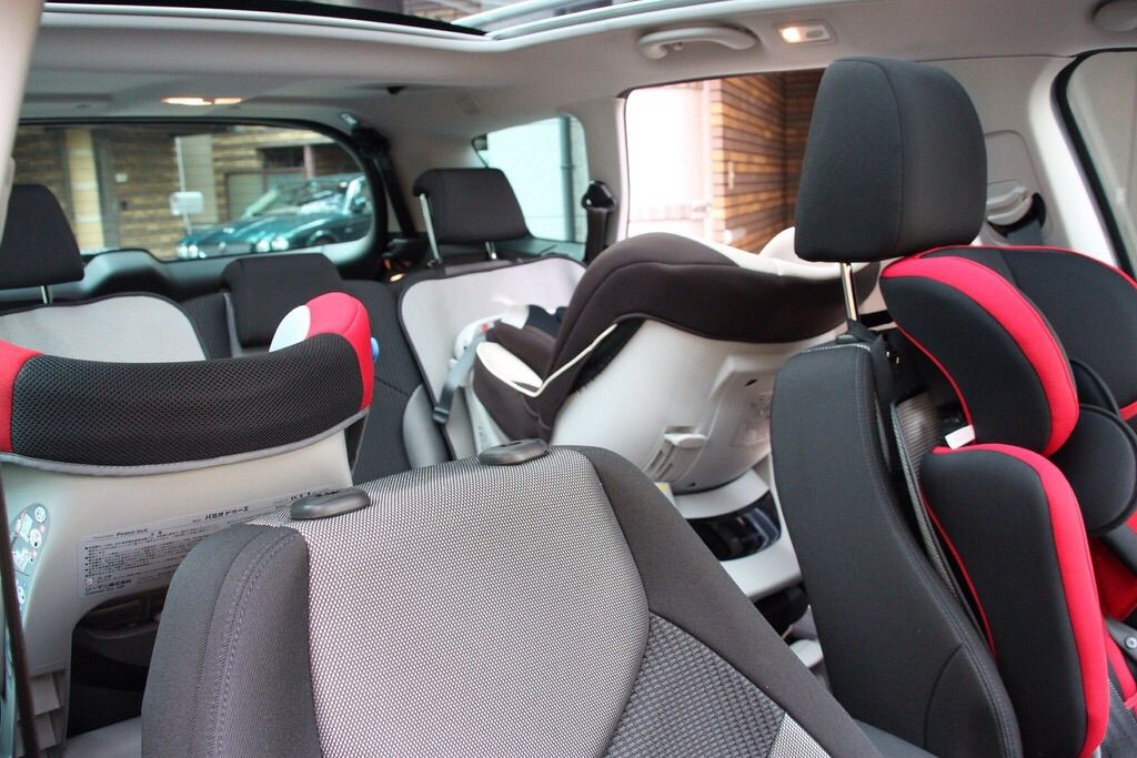 幸いにして3人の子宝に恵まれた我が家ですが、当然チャイルドシートも人数分必要でして、こんな感じになります。車両は2012年式のプジョー308SWです。(運転席のヘッドレストは撮影のために外してあります。)
