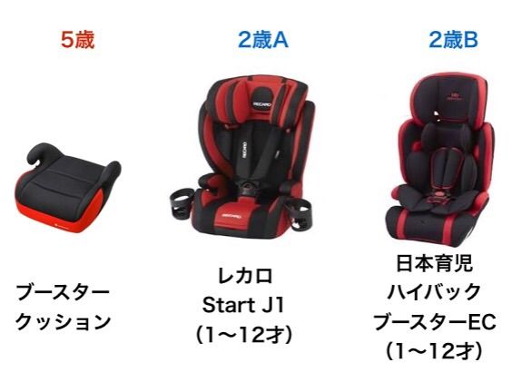 レカロ様からの授かり物によってジュニアシート2つとチャイルドシート1つで、少なくともあと2年は行けるかなと思っていたわけですね。わかりやすくすると下図の通りです。
