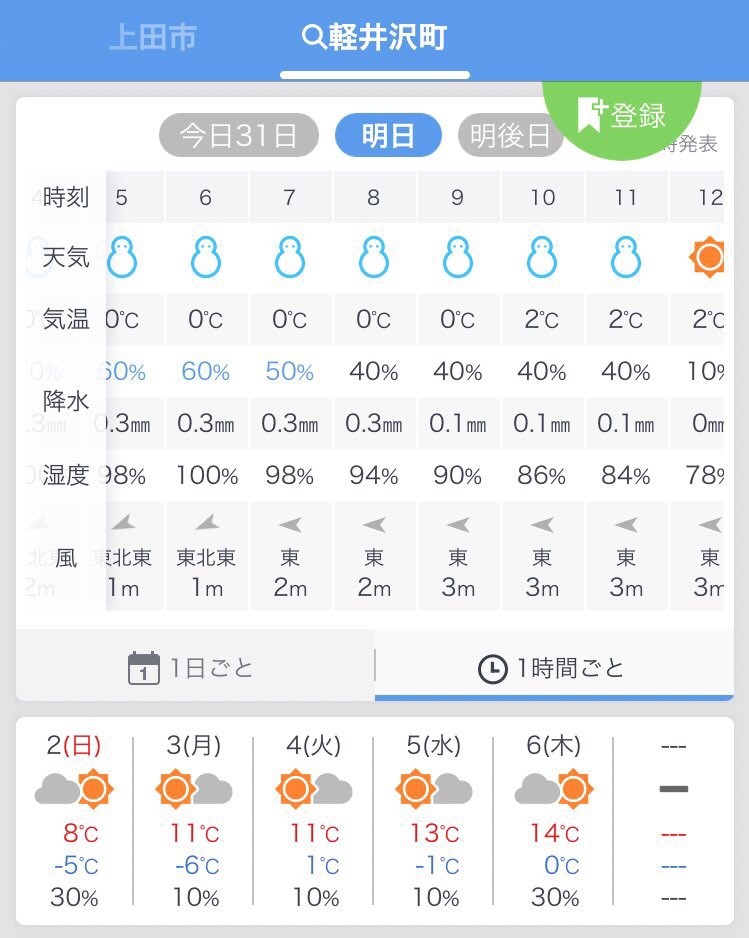 しかし、軽井沢周辺は前日の金曜日から土曜日午前中にかけて雪の予報で、さらに予想気温は金曜夜から土曜日の夕方までずーっと0度近辺・・・