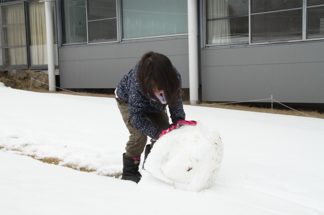 雪玉を転がすと面白いように雪が貼りついて大きくなります。東京に降るべちゃべちゃの雪ではこうはなりません。