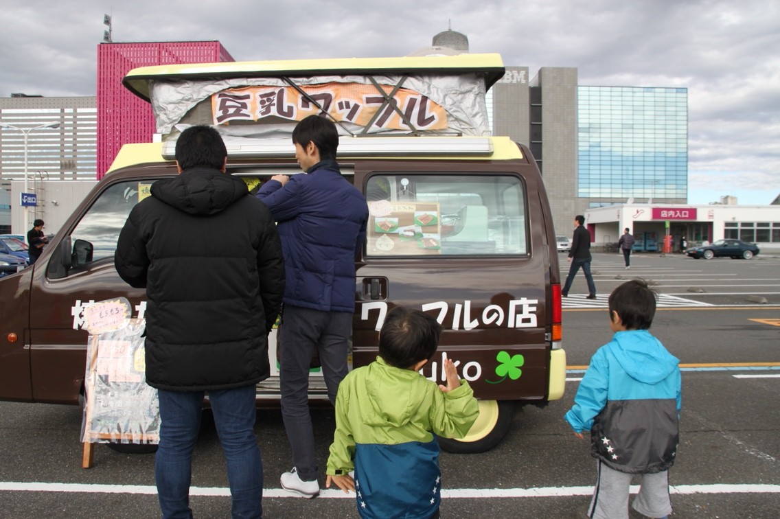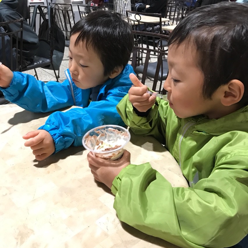 目ざとい4歳児たちがワッフル屋さんを見つけて「ワッフルワッフル!!」と繰り返し叫ぶので買わずにはいられませんでした。寒いので室内に退避して食します。僕は1〜2口食べただけですが、美味いですよ。
