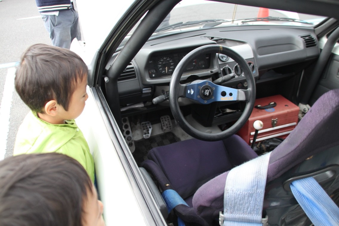 205ラリーの3ペダルに興味津々の4歳児たち。