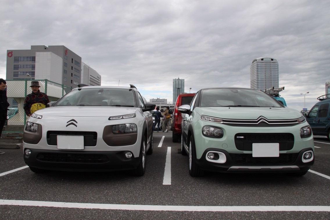 さて、プジョー以外のエリアも見ていきましょう。シトロエンC4カクタスと新型C3。シトロエンはほんと落ち着きますね。