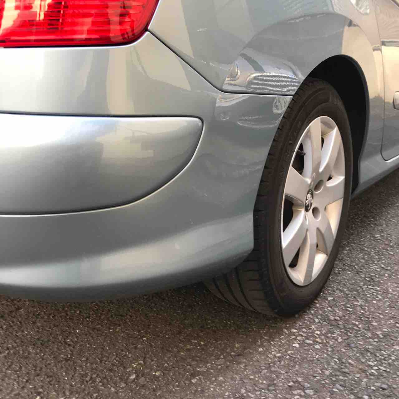 わが愛車2012年式プジョー308SW(T7)。バックした時にちょっと焦ってガードレールにガリガリと・・・