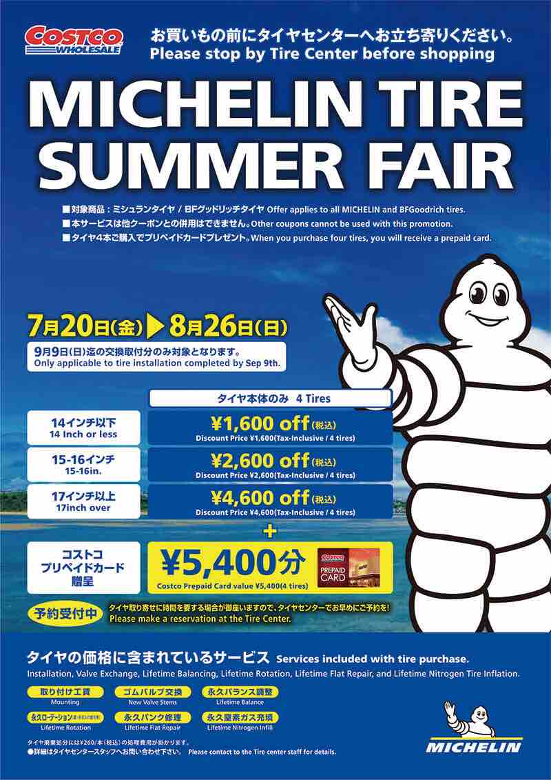 タイヤ交換は7月のサマーキャンペーンに合わせました。というかこれを待っていたんですよ。コストコが取り扱うタイヤブランドは、ヨコハマ、ダンロップ、ミシュランの3ブランド。概ね順繰りでキャンペーンを実施していて、会員向けのメルマガで知ることができます。