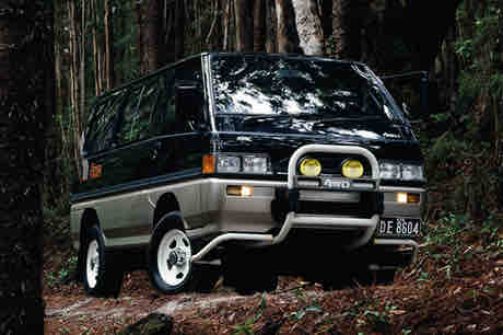3代目三菱デリカ・スターワゴン。当時のRV車には当たり前のように「カンガルーバー」が装着されていた。日本にはカンガルーなんて1頭もいないのに。