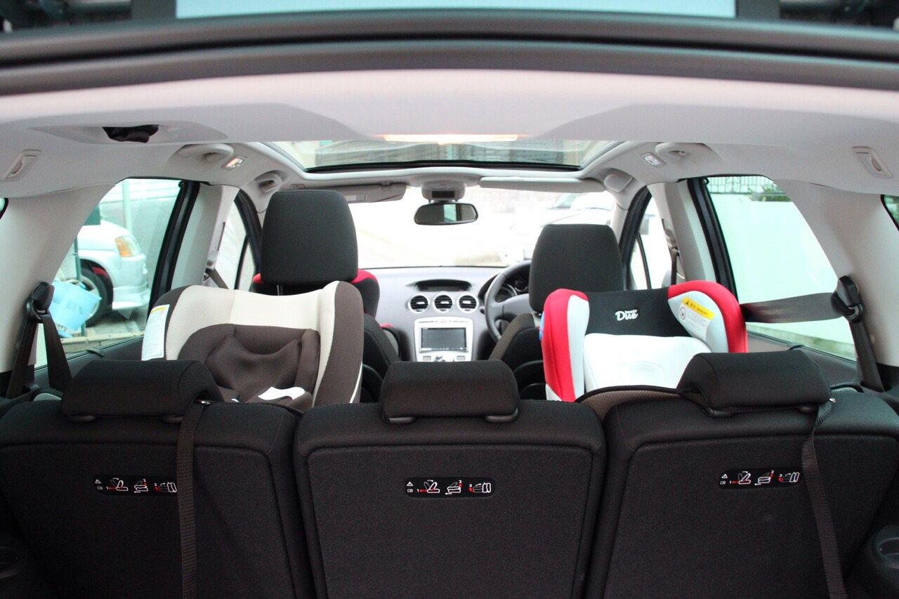 プジョー308SW (先代T7)にジュニアシート1台とチャイルドシート2台を載せた図。