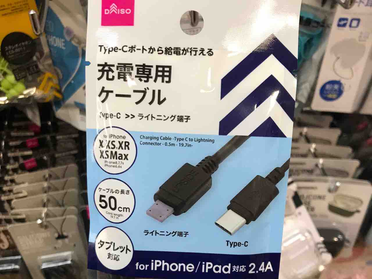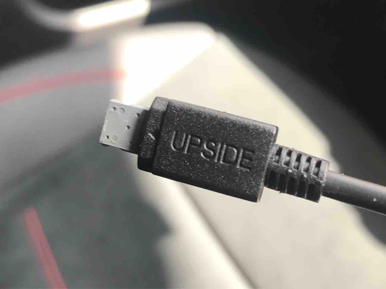 長さは50cmと短いですが、車で使うにはこれで十分。難点は、Lightningケーブルのくせに表裏があり、「UPSIDE」と書かれた側を上にして挿さないと充電されません。
